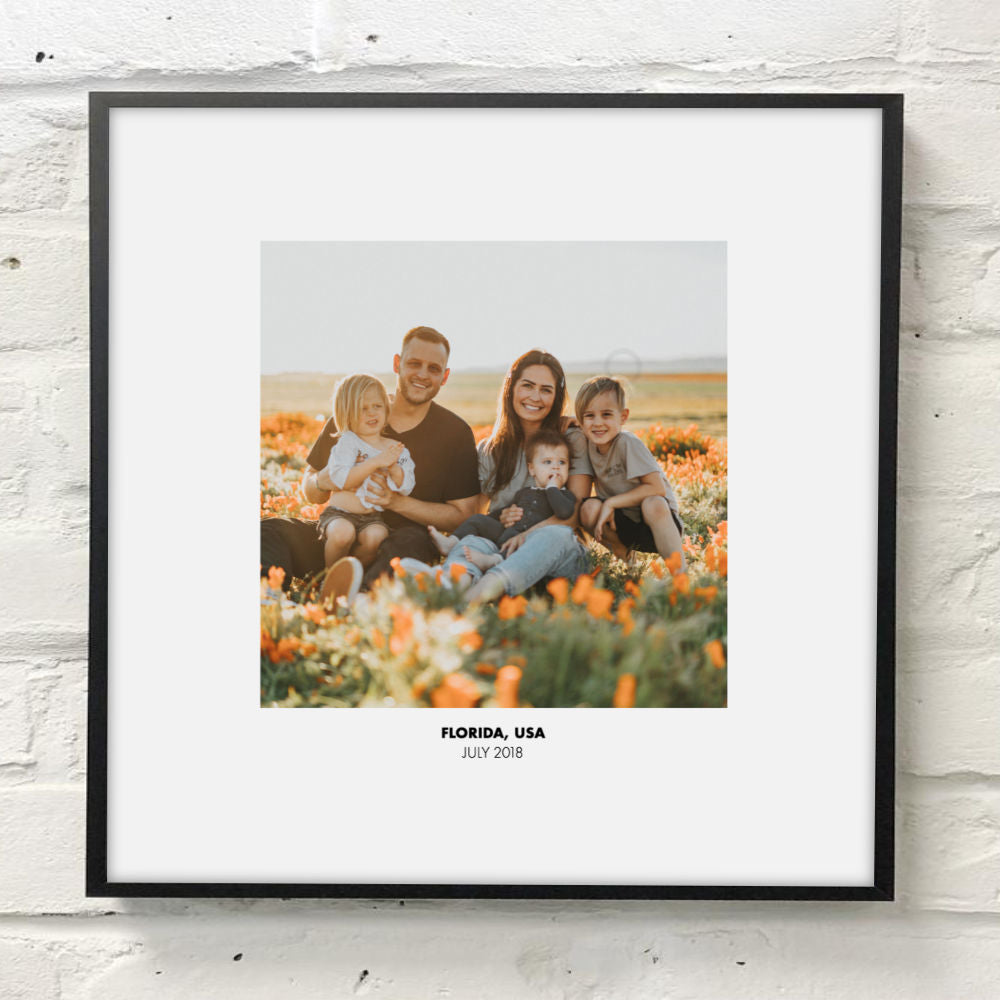 Create a beautiful framed photograph with caption text. Whether it’s a meaningful date, favorite destination or fun title, overlay your image with text or write a short message beneath to really personalize your print. Makes a perfect gift for any occasion such as a photo of the family for Christmas or even to decorate your own home with a family photo.