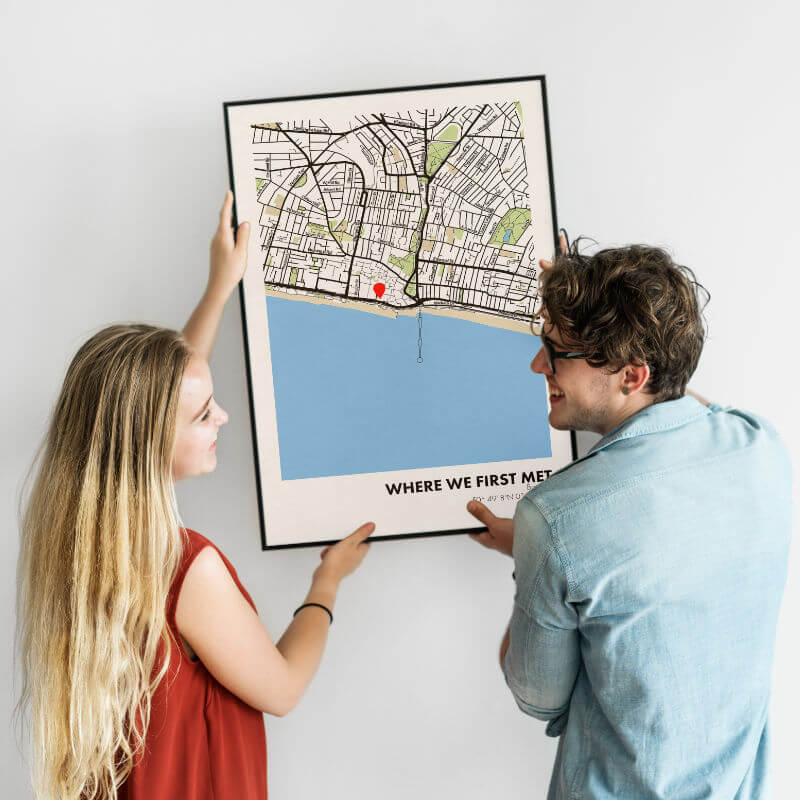 Customise the design for special moments in your life, such as where we first met, got married, live, etc. Personalise the map further by adding as many markers on the map.