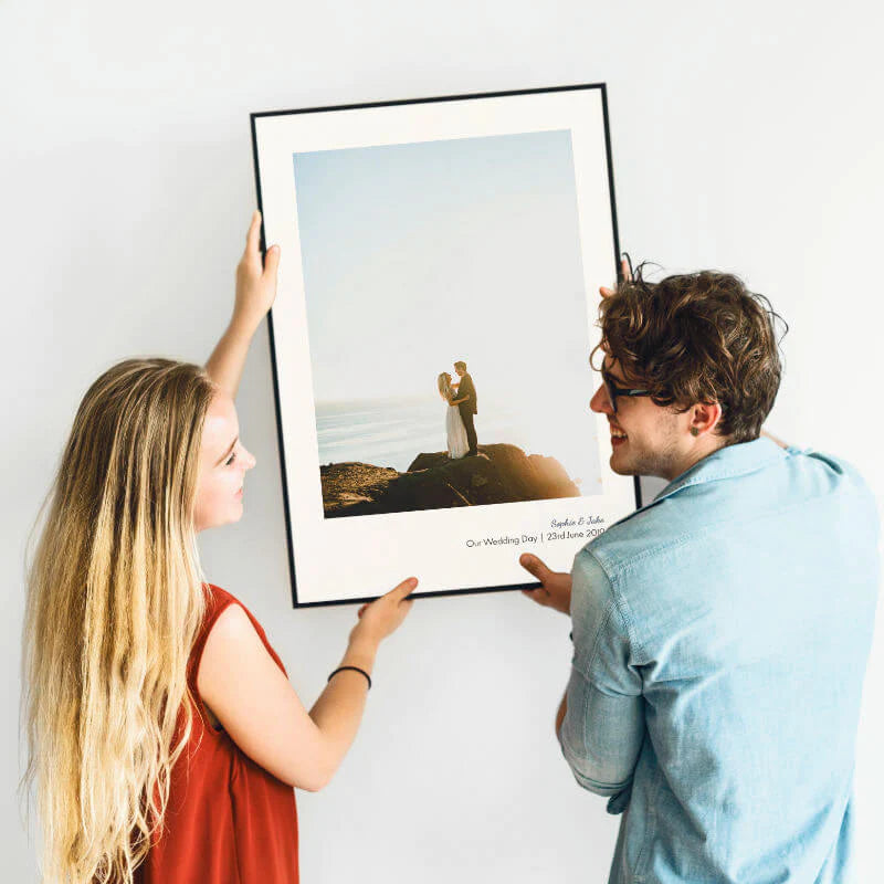 Simply start by uploading your photograph, choose the ratio you want the photograph to be using our crop tool and then select the print size you want. Use our live preview/designer to customise the text and photograph however you wish, we offer this design in different orientations also; portrait, landscape or square each with several frame finishes to choose from. If you opt for it to be framed, your design will be expertly framed by our team and sent to you ready to hang.